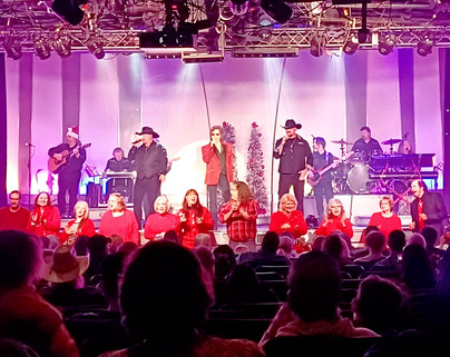 Stevie Lee Woods and the Nashville Roadhouse Band entertained the crowd with a special show, packed with holiday favorites. It was a true celebration of the season. The show featured Woods' debut of his newly recorded song "Ozark Mountain Christmas" written by songwriter and vocalist Lynda Lynn. The song is a reminder of the true meaning of Christmas. Woods and his band were accompanied by a special Christmas choir, directed by Sunshine Brenda Cole, and featuring a variety of Branson's finest talent, including Lynda Lynn, her husband Bud and many other familiar faces.