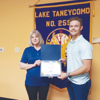 Members of the Lake Taneycomo Elks Lodge 2597 in Forsyth were proud to present Scholarships to three very deserving students. Exalted Ruler Marilyn Atchley presented the awards. Madelynn Cook from Forsyth High School and Isaac Beebe of Hollister High School were each presented with a $1,000 Scholarship from the Lake Taneycomo Elks Lodge 2597 Lyla Girth/ Dennis Little Scholarship Fund. Jack Jackson from Hollister High School was presented with a $1000 Most Valuable Student Scholarship from the Missouri State Elks Association.